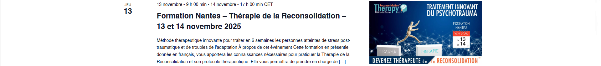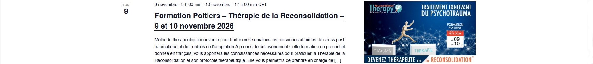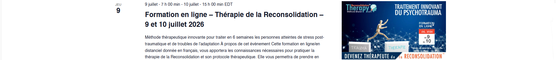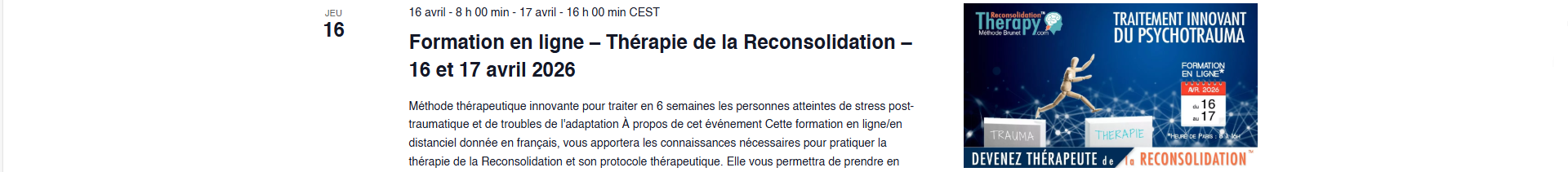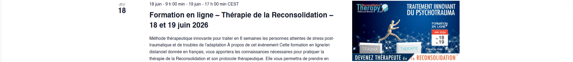 Cette formation permet d’apprendre à utiliser la Thérapie de la Reconsolidation™ appliquée à la résolution des traumas.
