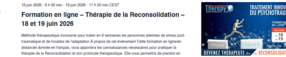 Cette formation permet d’apprendre à utiliser la Thérapie de la Reconsolidation™ appliquée à la résolution des traumas.